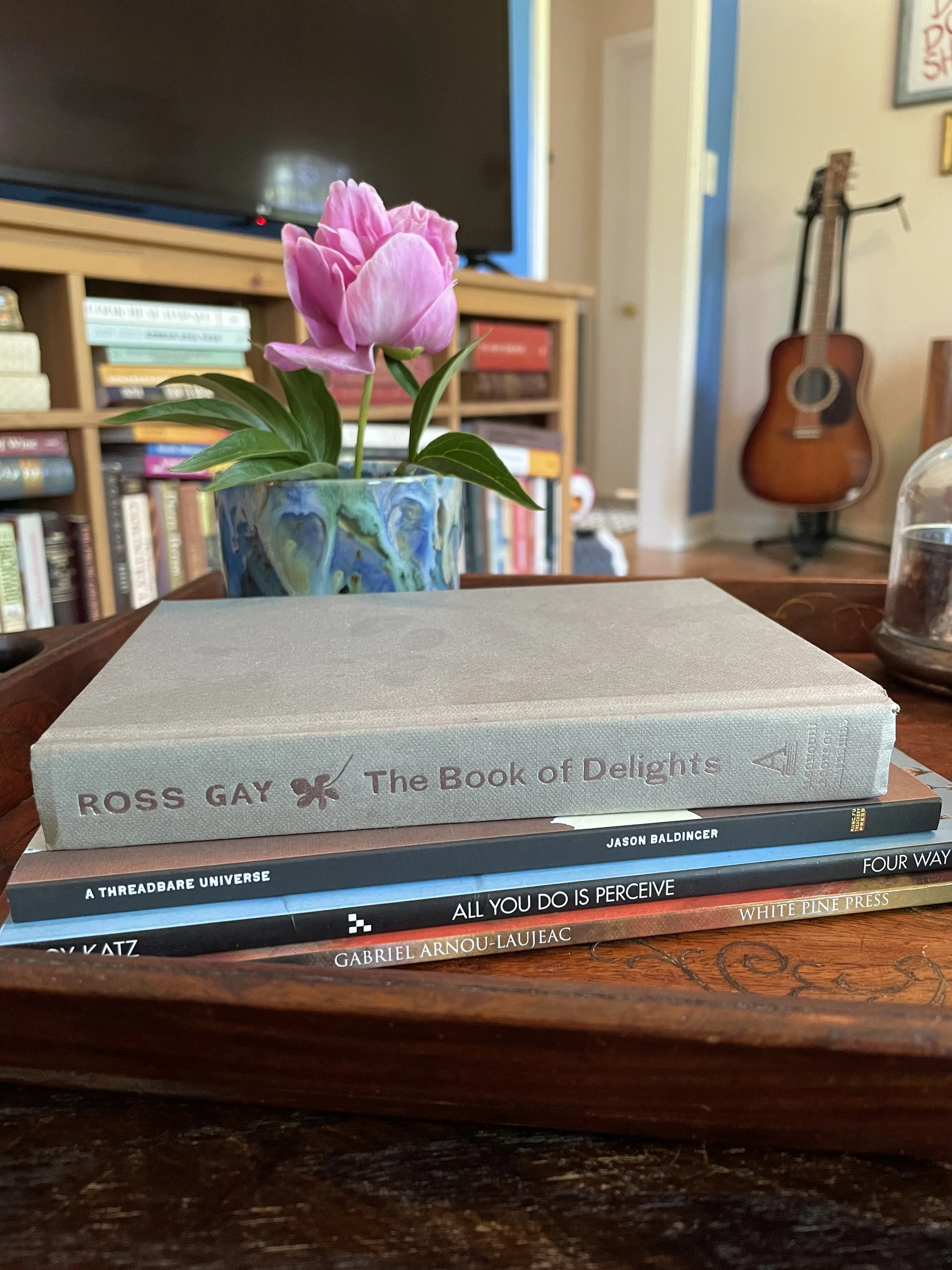 It's not quite accurate to call Ross Gay's The Book of Delights my coffee table book, because truthfully, wherever I am in my house or in the world, it tends to follow me and always be within arm's reach (can you see the fingerprints on the top of it?! Proof I've often carried it to the kitchen table!). Every day for a year, the poet Ross Gay wrote a short essay about something delightful -- his topics include everything from espresso cups to figs to the way two people sometimes carry a shopping bag between them, one handle in each hand. The result is a beautifully intimate little book, full of gratitude and detail and loving attention. I treat this book like an oracle deck, a compass, a bible study: I love opening it to a random page, reading a few lines or a few pages, and remembering that magic is everywhere. All we have to do is notice it.